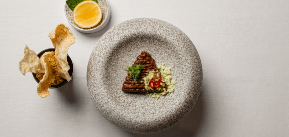 Located within the Khai Hotel Karaköy, Tuzz Restaurant is born from the enchanting fusion of cultures. In our restaurant, where we aim to offer you an unforgettable gastronomic experience, we blend global flavors with Anatolian touches under the guidance of Chef Nilay Lale. Her deep curiosity about different cultures inspires innovative dishes, infusing this journey with surprises drawn from Far Eastern and Indian cuisines. Every dish we serve is meticulously prepared to showcase nature’s generosity; we source our ingredients from local producers in accordance with the season, steadfast in our commitment to quality. Thanks to this dedication, we are able to offer our guests the unique flavors of the season in every bite. Our carefully crafted dishes at Tuzz are accompanied by selected wines as well as signature and classic cocktails made with the freshest seasonal ingredients. These cocktails perfectly complement your dining experience. Our restaurant is located on the top floor of Khai Karaköy, one of the most iconic neighborhoods of Istanbul, offering a stunning view of Istanbul’s historical panorama and the enchanting sight of the Galata Bridge. Born in 2021 within Khai Bodrum at Yahşi Yalısı and much loved over three seasons, Chef Nilay Lale's flavors are now always and exclusively with you at Khai Karaköy.